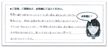 一時帰国に合わせて過払い金が解決してほっとしています。